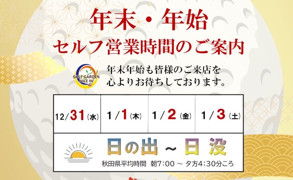 昨年もナイスインをご愛顧いただき、心より感謝申し上げます!🙇♂️ 本年も何卒よろしくお願い申し上げます! 皆様にとって、本年も素晴らしいゴルフシーズンになります事をお祈り致します!⛳🏌️♂️🏌️♀️✨ 株式会社裕紀 […]