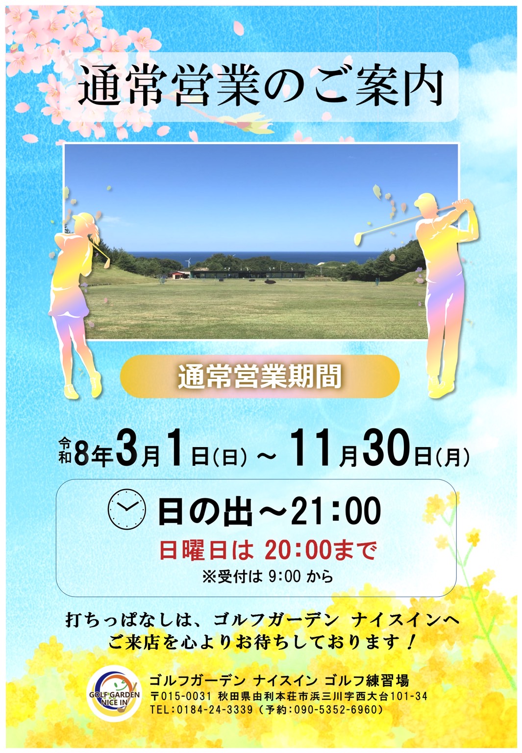 いつもゴルフガーデン ナイスインをご愛顧いただき、誠にありがとうございます。冬季期間も、沢山のお客様にご来場いただき、心より感謝申し上げます。